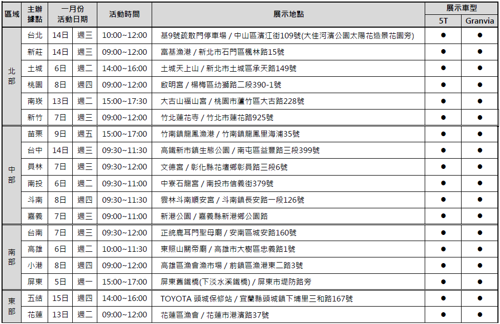 HINO 5噸、TOYOTA Granvia戶外微展車全台同步實施中,歡迎各地貴賓蒞臨鑑賞。