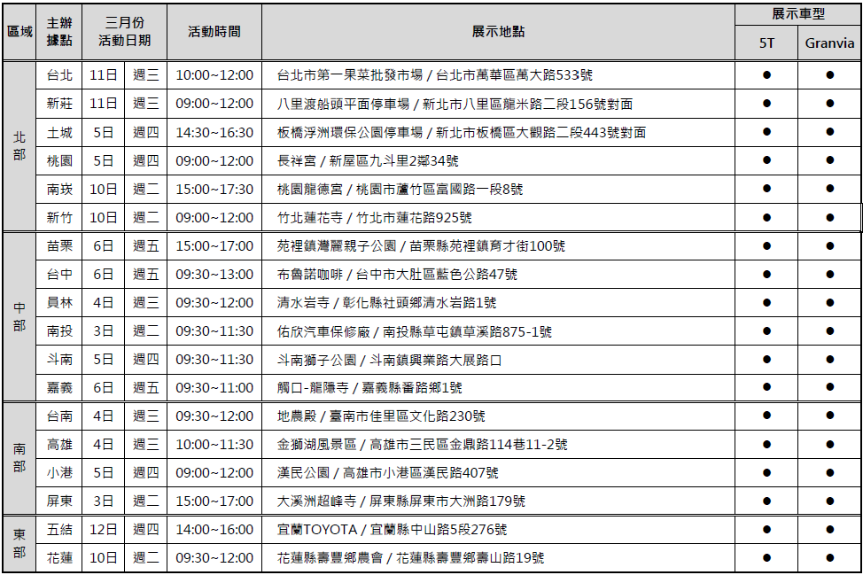 HINO 5噸、TOYOTA Granvia戶外微展車全台同步實施中,歡迎各地貴賓蒞臨鑑賞。
