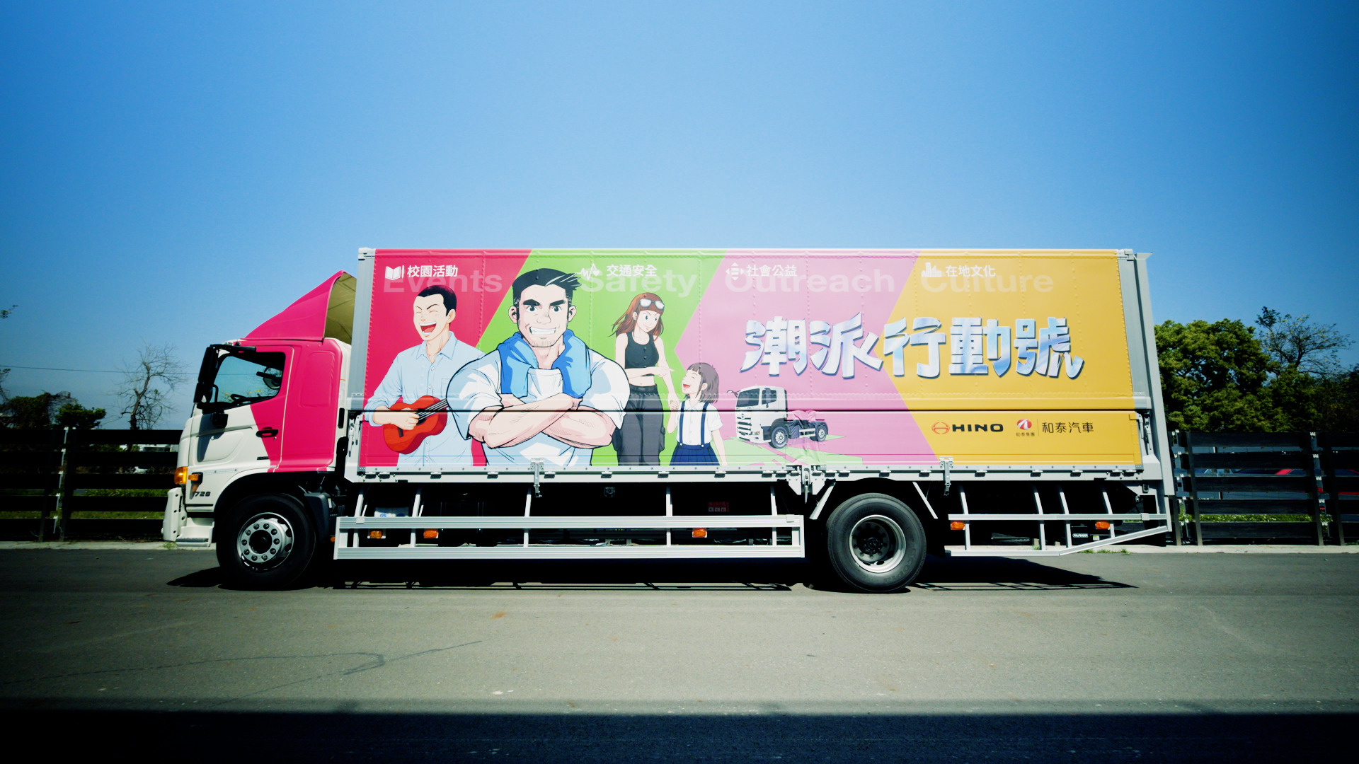 作為台灣商用車市場領導品牌,由和泰汽車代理的HINO長年支撐物流運輸、城市建設與產業運作,是驅動社會運轉的重要基礎。隨著品牌角色從產品供應者進一步轉向社會參與者,HINO做了一個不同的嘗試—把一台大貨車,轉化為可以走進人群、傳遞品牌理念與交通安全的行動平台。從去年在華山文創園區舉辦的「HINO GO潮派」展覽出發,將原本在場域中的品牌體驗,轉化為可巡迴移動的「HINO潮派行動號」,讓品牌不再停留於展覽空間,而是進入城市、校園與地方社區,成為一種可以被參與的日常體驗。