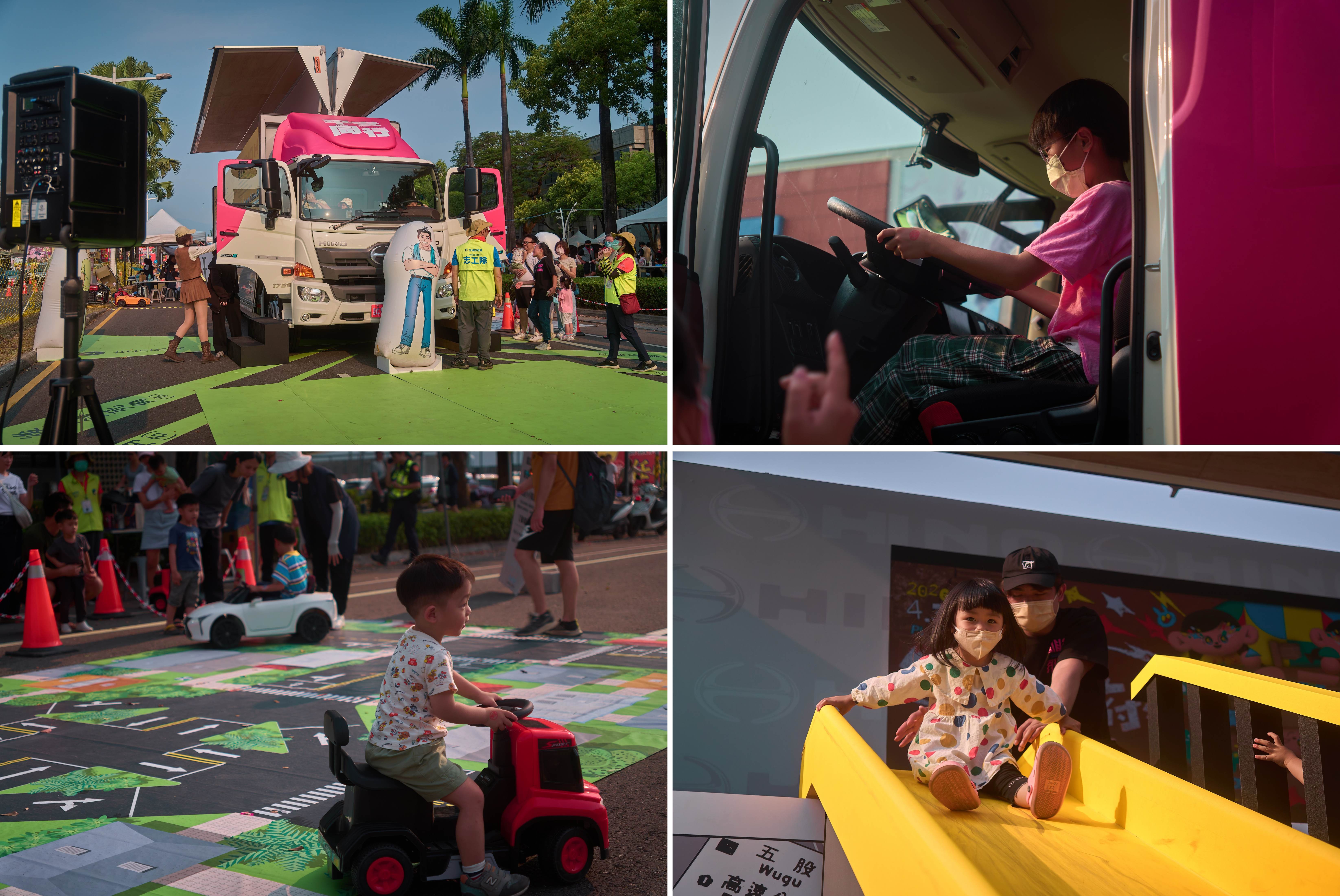 在品牌活動累積基礎上,「潮派行動號」進一步走入大型公共場域。4月3日至4日參與屏東縣政府舉辦的第二屆「包圍縣府 孩子作主」兒童節活動,現場參與人數超過五萬人。活動中,HINO攜手屏東縣政府交通旅遊處,以「小小道安王」為主題設計互動體驗內容,結合小小駕駛模擬、大車視野盲區認識與情境式道路設計,引導孩童在參與過程中建立交通安全觀念。透過實際登上駕駛座的體驗,民眾能直觀感受大型車的視線限制,並在現場引導下學習正確用路行為。此類體驗式設計,不僅提升參與度,也進一步驗證行動平台在公共場域中的溝通效果。
